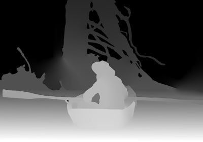 It took me about 2 hours of trial and error and I must say that I was completely drained when I decided it was time to quit and call it a day. This depth map has obvious errors which I am just discovering now. I completely forgot about the hole around where the left oar holder is. Also, I put the hole between the left arm and leg of the guide at the wrong depth. Last but not least, I completely ignored the depth discontinuity on the right side of the boat leaving a gigantic hole, which would prevent any boat from floating, I think. Those are easy fixes though.