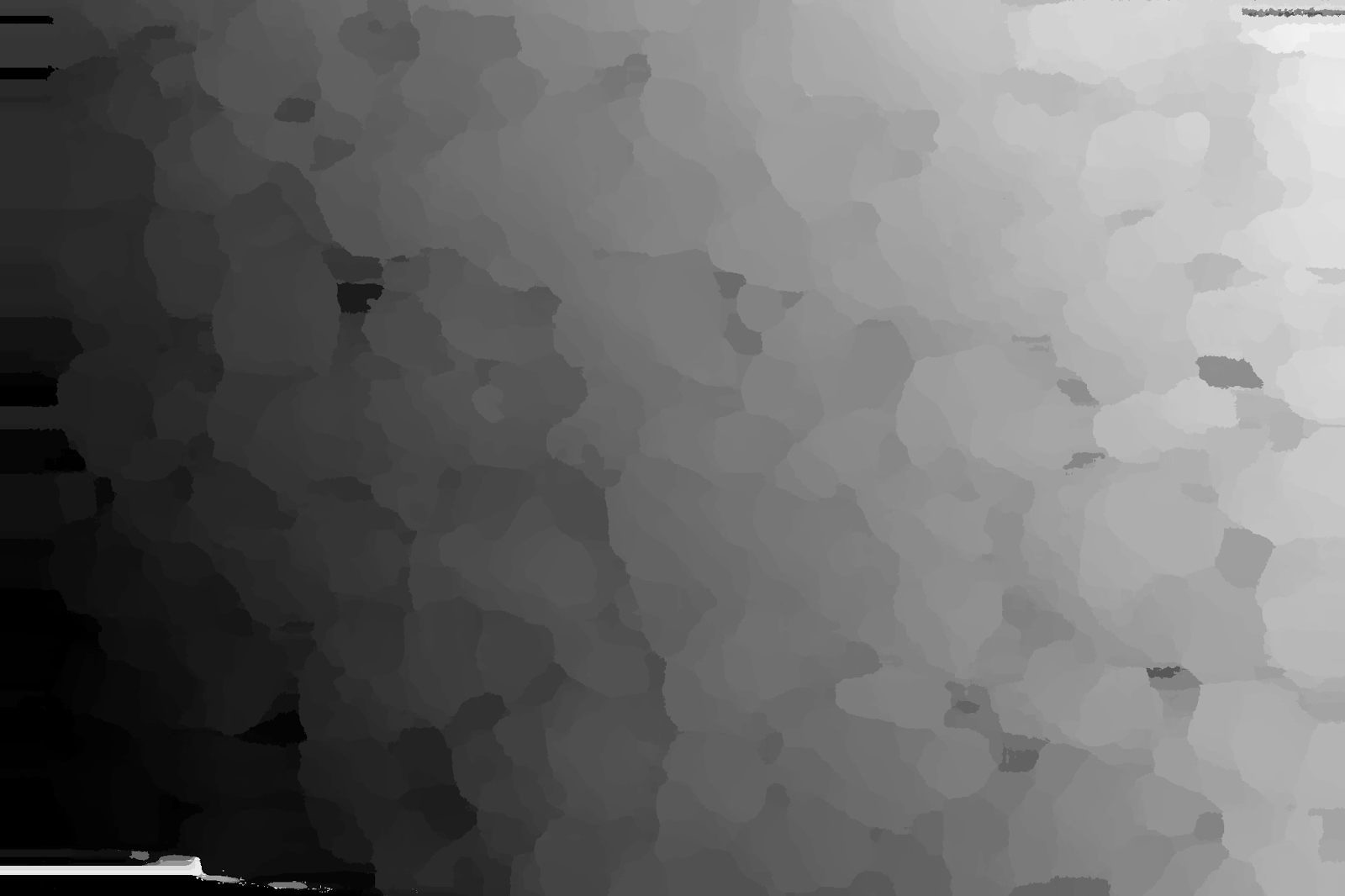 Depth map produced by DMAG7 using spatial sample rate = 32, color sample rate = 16, radius = 12, lambda = 0.1.